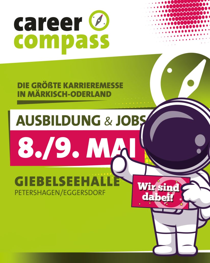 Wer uns und die angebotenen Ausbildungsplätze besser kennen lernen möchte, sollte uns auf der Career Compass – 08. & 09.Mai – Giebelseehalle Petershagen – besuchen.