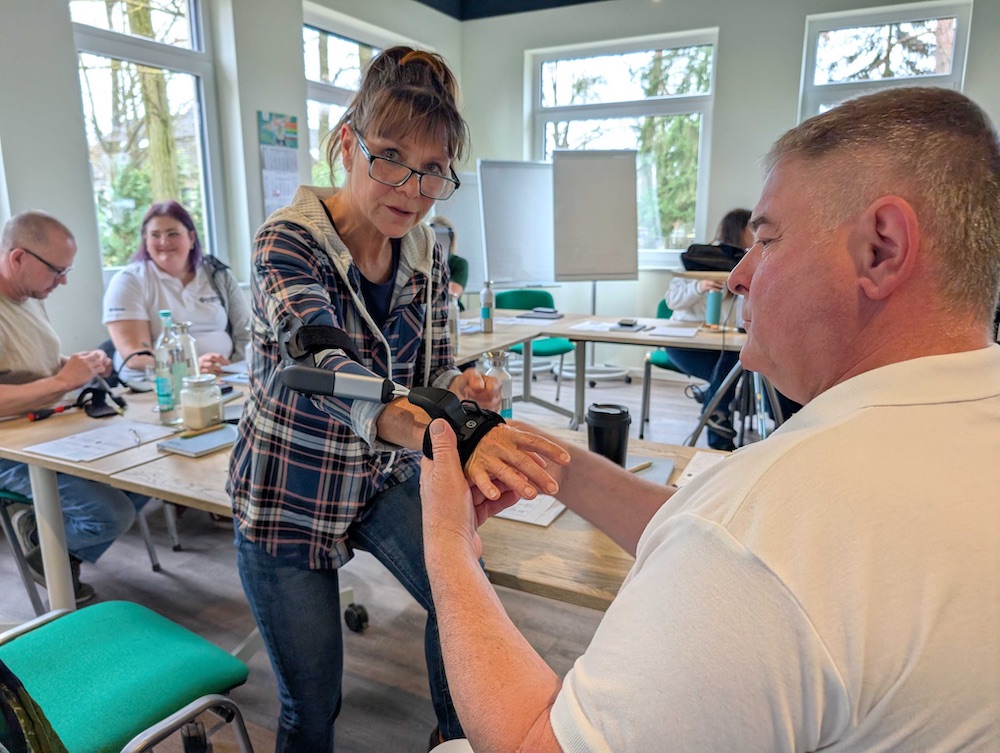 Am 24.03.2026 wurden unsere Mitarbeitenden von der Firma STIL zu diesem Produkt ausführlich geschult. Sie lernten den Umgang und die Handhabung der Orthese und konnten diese in ihrer Funktionsweise selbst testen. Zudem gab es detaillierte Informationen zur Beratung und auch zur Beantragung des Hilfsmittels bei den Krankenkassen.